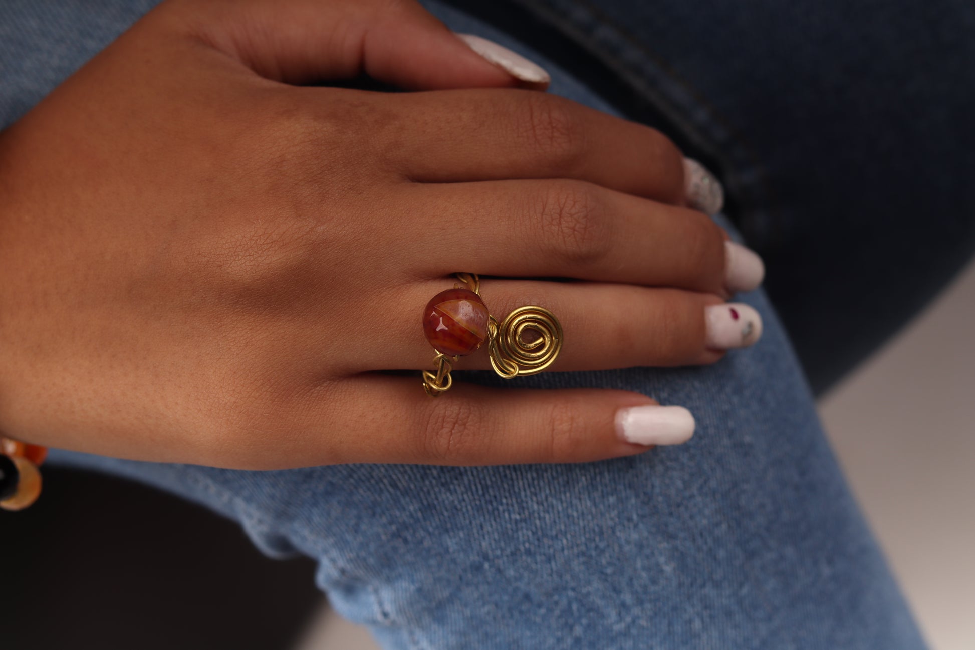 Colored beaded bracelet with copper wire and beads ring